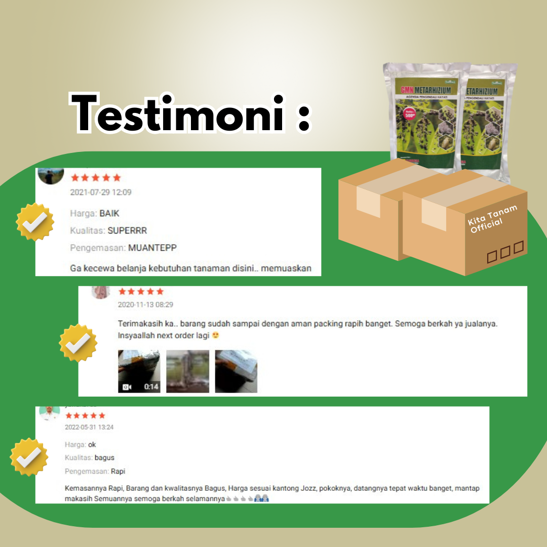 • Larutkan 100 gr GMN METARHIZIUM dalam larutan 15-20 Liter air/1 Tangki Sprayer, Semprotkan pada tanaman yang terserang serangga.